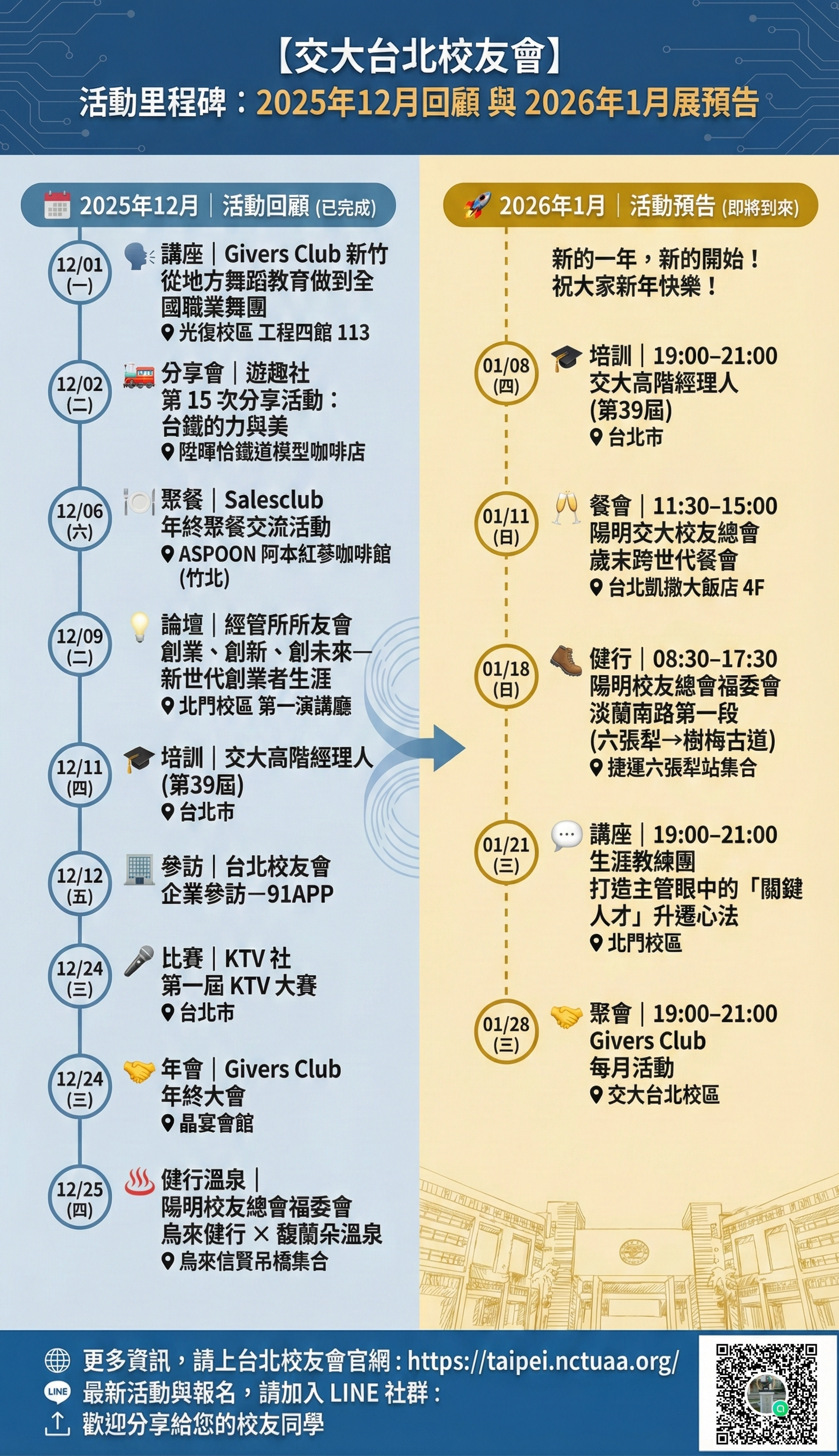 【交大台北校友會】2025年12 月活動回顧與2026年1月活動預告