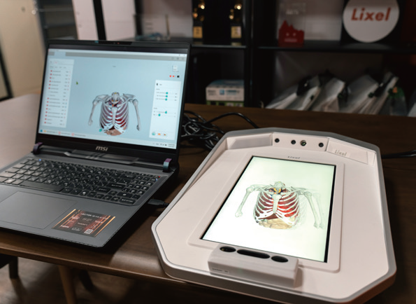 在術前規劃與術中引導方面,則包括與醫院的放射腫瘤部共同打造全球首創的「裸視3D放射治療教學與決策平台」、與腦神經外科合作開發術前模擬與檢視系統,以及與胸腔內科合作建構支氣管鏡手術輔助導引系統。至於在遠距醫療方面,2024年協助三軍總醫院臺北與澎湖院區以兩部3D浮影裝置完成遠距同步術前討論;與臺北榮總合作開發義肢安裝模擬系統,讓患者以手勢凌空切換義肢型態,直觀體驗安裝效果,減輕焦慮與不確定感。
