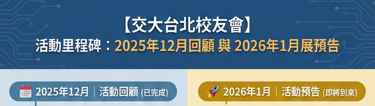 校園校友動態 2025-12-22 【交大南部校友會】12月活動回顧——參訪嶄新的高雄車站 交大南部校友會於2025年12月19日參訪嶄新的高雄車站,透過實地走讀與導覽解說,深入了解車站改建歷程、空間規劃理念與未來營運發展藍圖。此次活動不僅讓校友近距離 (...繼續閱讀) 2025-12-22 【交大台北校友會】2025年12月12日91APP企業參訪 為了讓校友與在校生能有更多實際交流的機會,交大台北校友會 於 2025 年 12 月 12 日(五) 舉辦「走進 91APP:交大校友帶你看見 AI 時代的品牌 (...繼續閱讀) 2025-12-22 【交大台北校友會】2025年12 月活動回顧與2026年1月活動預告 2025年12月活動回顧12/01(一)|Givers Club 新竹|從地方舞蹈教育做到全國職業舞團|光復校區12/02(二)|遊趣社|台鐵的力與美|鐵道模型 (...繼續閱讀) 2025-12-22 賀!陽明交大科技管理所黃仕斌教授榮獲科技管理學會第26屆院士殊榮 「2025中華民國科技管理學會年會暨論文研討會」,12月4日至5日在國立清華大學盛大舉行,吸引超過400位來自產業、政府、學術與研究機構的關鍵人士參與。年會除頒 (...繼續閱讀) 2025-12-22 「愛與樂的療癒之聲」陽明交大教職員合唱團公益音樂會 陽明交大教職員合唱團 成立於 1981 年,由熱愛歌唱的教職員創立,成員包括教職員、眷屬、退休人員及社區友人。指揮王郁馨老師自 2006 年帶領合唱團,鋼琴合作 (...繼續閱讀) 共 90 頁1 2 3 ... 90 »